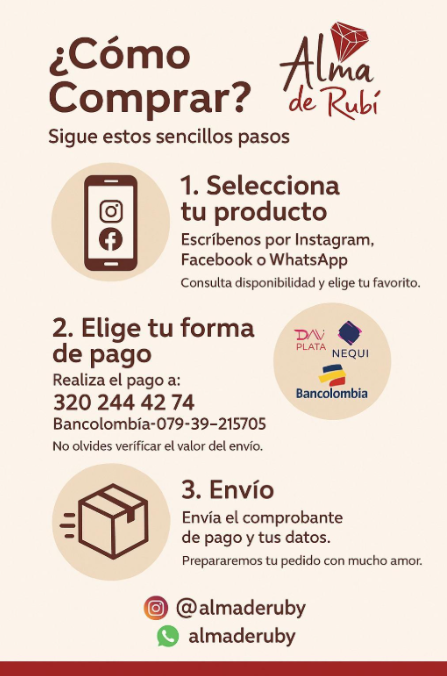 En Alma de Ruby transformamos fibras en bolsos y accesorios sostenibles, hechos a mano en Colombia. Cada diseño nace del respeto por la naturaleza, el trabajo artesanal y la belleza consciente, siendo una marca resgitrada y haciendo parte de la Camara de Comercio.