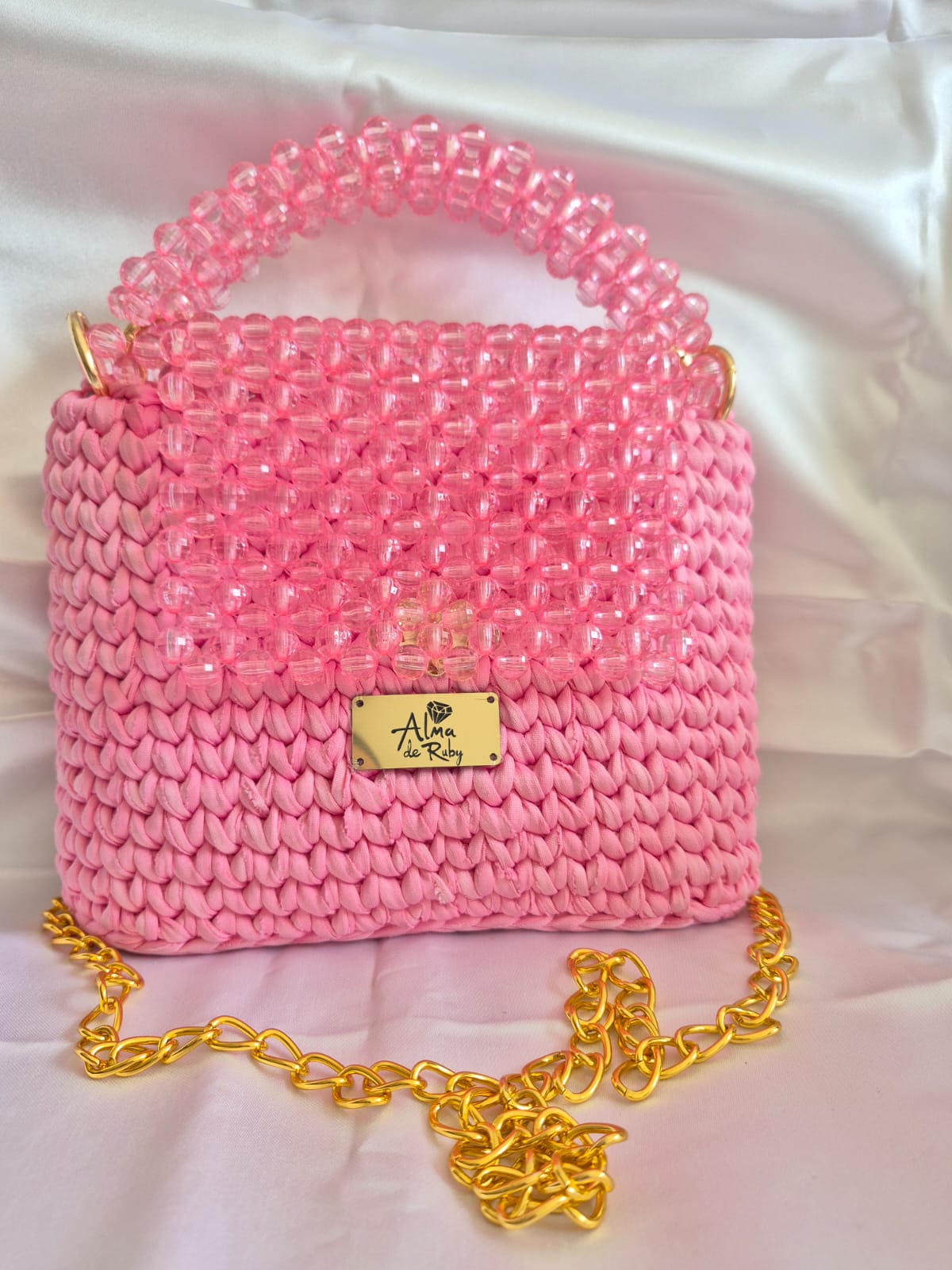 BOLSO DE PERLAS ROSA
